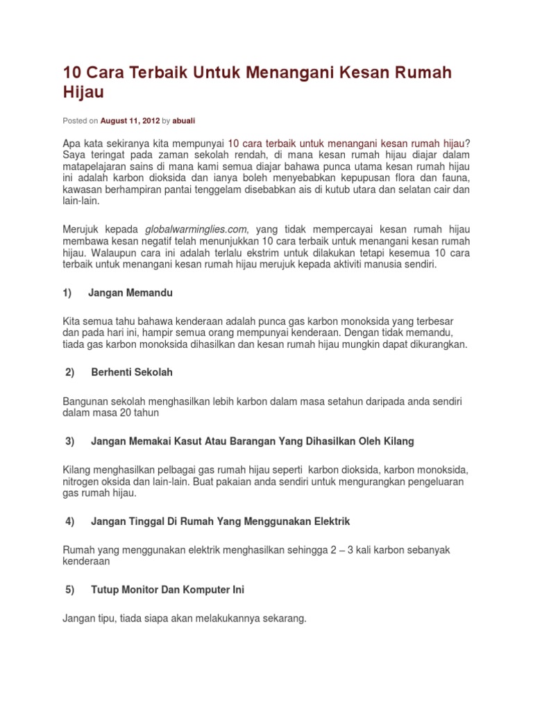 10 Cara Terbaik Untuk Menangani Kesan Rumah Hijau Pdf